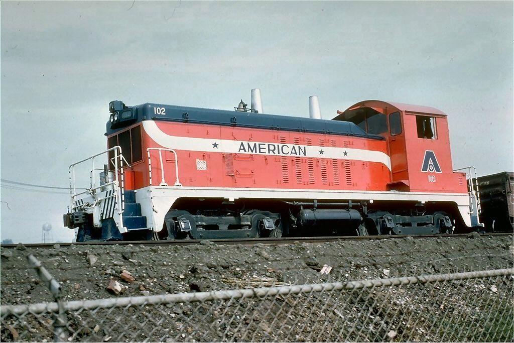 ![]() American Cast Iron Pipe NW2 #102, Birmingham AL1973, nee Lake Terminal RR 1009, ex BS21, blt 1948, cn5263 Lon A. Coone |