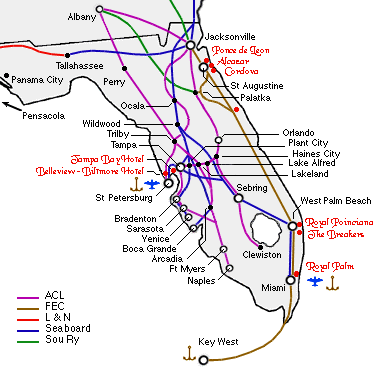 The Plant System reached the deepwater Tampa Bay in 1884 where it was soon joined by the F,C&P and its Jersey City to Tampa through sleeper. They then pushed further down the Gulf coast to tap the few population centers of that region.