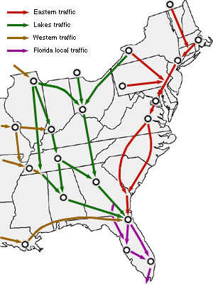 In the Standard Era, the Florida Trade The Florida East Coast railroad was swamped with traffic and began an urgent double tracking project. On the Gulf side, the Seaboard was coveting Miami and built the Coleman Cutoff from Wildwood to West Palm beach and hence south to Miami. This was the last significant trackwork in Florida and very nearly the last major new track project in American railroading.