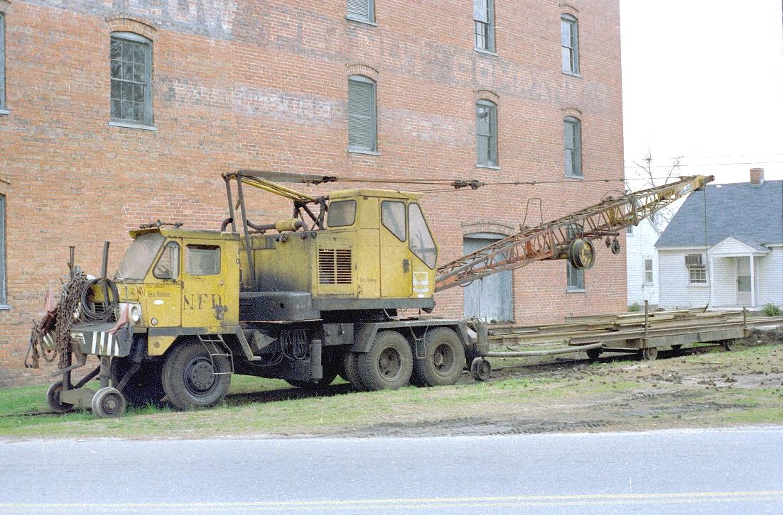 Norfolk Franklin & Danville road railer crane #11625, Franklin VA 1984 Russell Underwood |